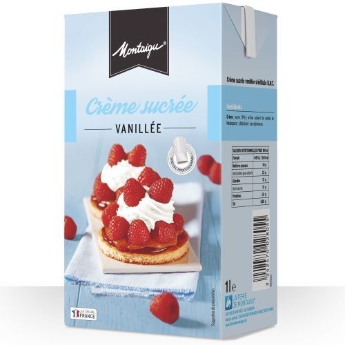 ✔️ Un litre de crème sucrée vanillée Montaigu produit environ 2,6 à 2,7 litres de crème foisonnée.